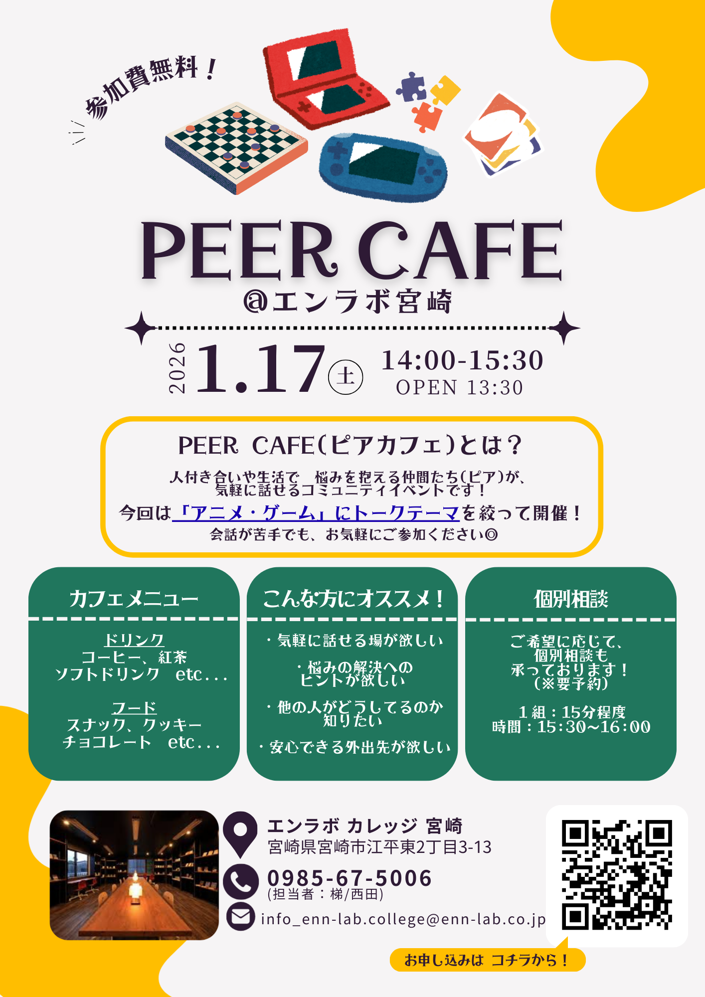 【宮崎】1月「Peer Cafe(ピアカフェ)」イベントご案内♪