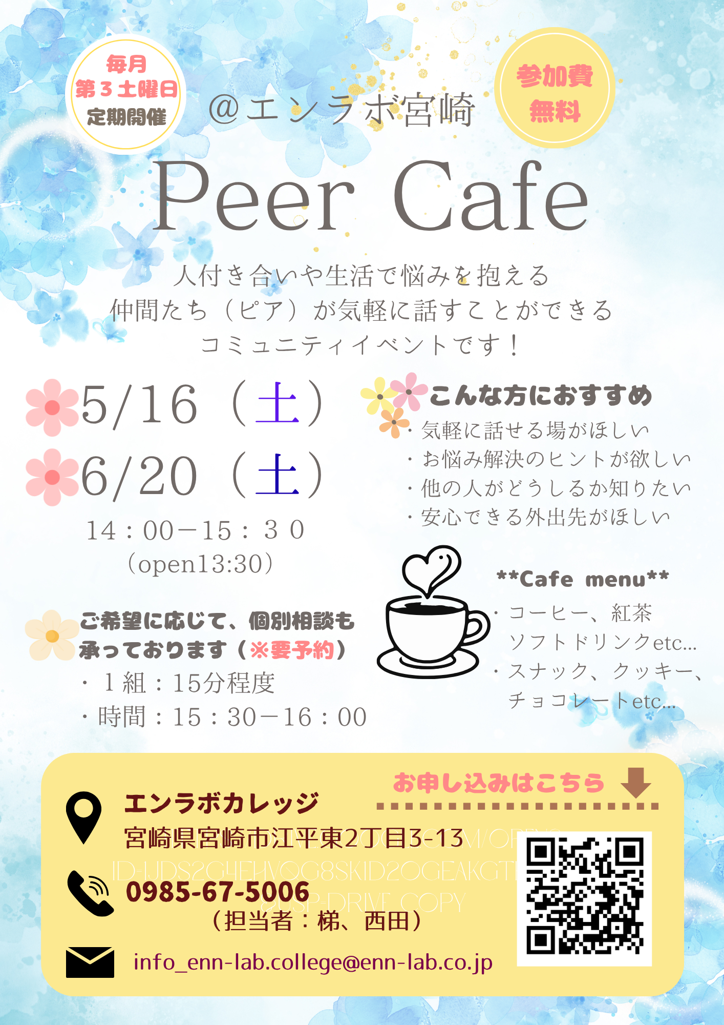 【宮崎】5月・6月のPeer Cafe@宮崎 開催のお知らせ🎵