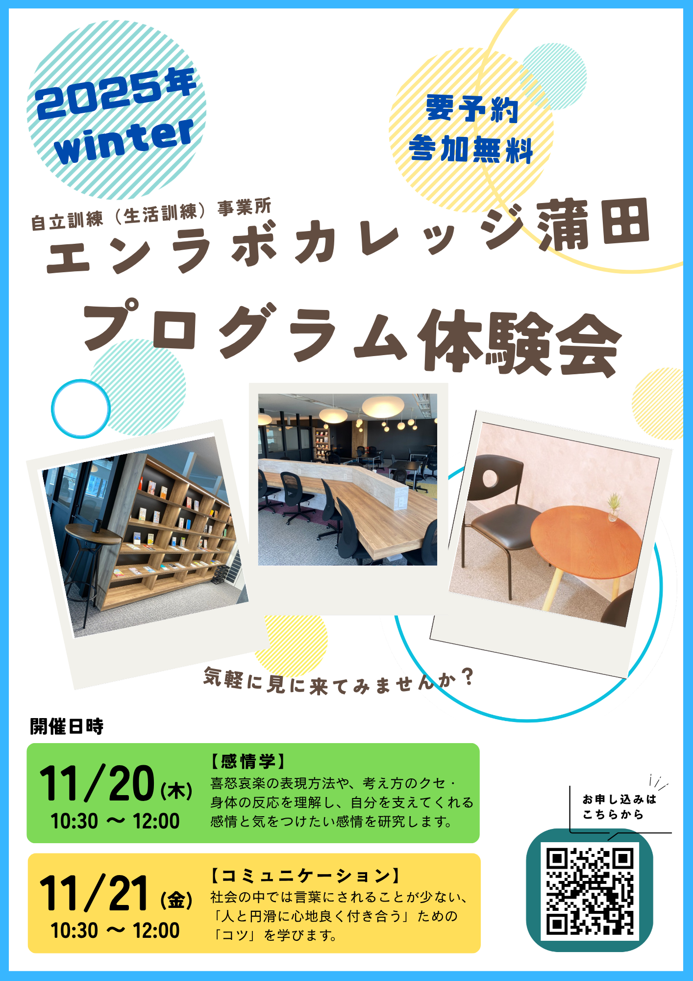 【エンラボ カレッジ蒲田 プログラム体験会のお知らせ♪】